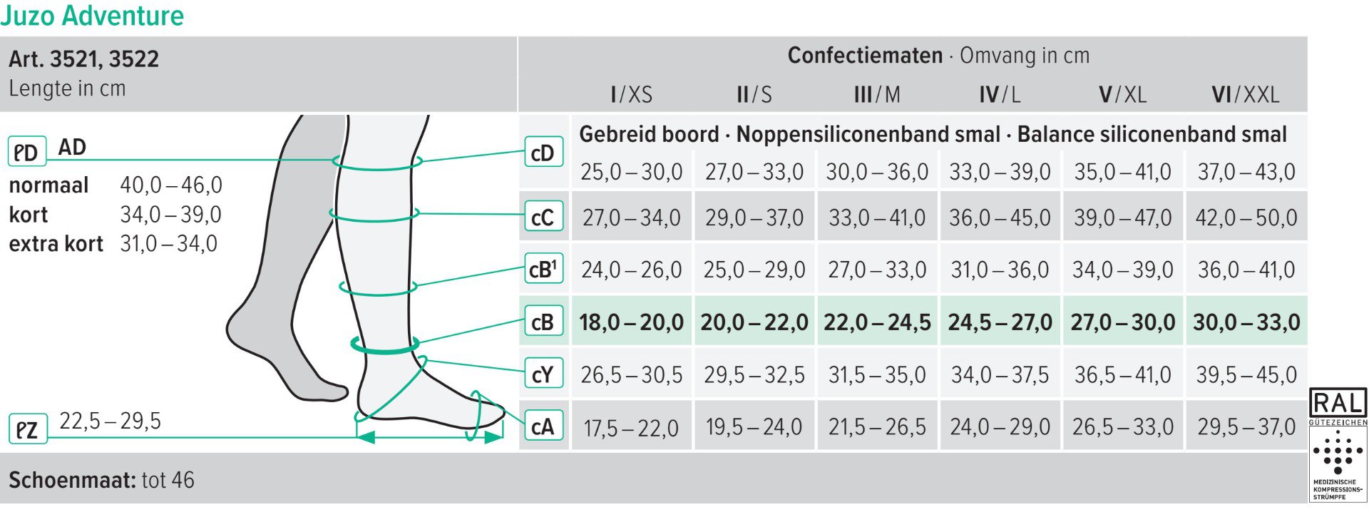 | Ausführung Strumpf | Wadenstrümpfe (AD) |