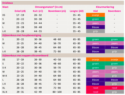 - Farbcodiertes Größensystem zur schnellen und einfachen Auswahl der Strumpfgröße
